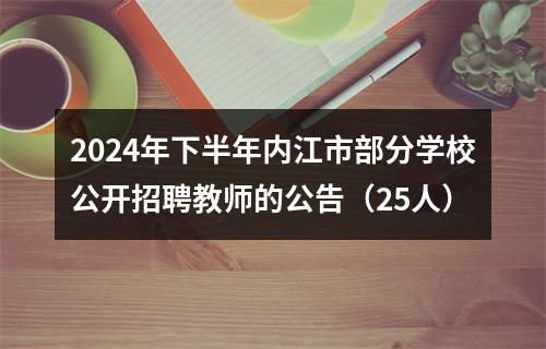 根据《事业单位人事管理条例》(中华人民共和国国务院令第652号)、《四川省事业单位公开招聘工作人员实施办法》(川人社规〔2024〕3号)等法规文件的规定,按照“公开、平等、竞争、择优”原则,2024年下半年内江市部分学校将面向社会公开招聘教师25名。现将公开招聘有关事项公告如下。