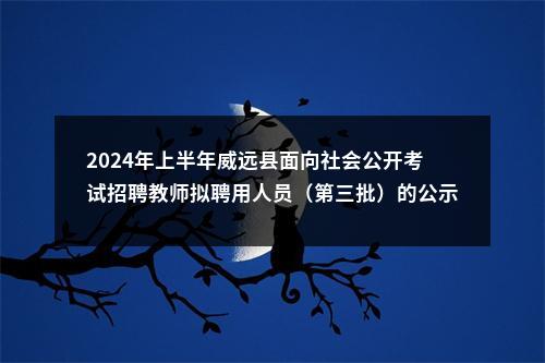 在线咨询 根据威远县人力资源和社会保障局 威远县教育和体育局《关于2024年上半年威远县面向社会公开考试招聘教师的公告》要求,经发布公告、网上报名、笔试、资格审查、面试、体检、考察等相关环节,现将第三批拟聘用人员名单(系孕妇生完小孩后补检合格)予以公示如下。