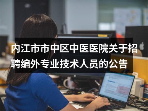 在线咨询 内江市市中区卫生健康局下属事业单位内江市市中区中医医院现因工作需要,面向社会公开招聘编外人员共2名,现将有关招聘事项公告如下:
