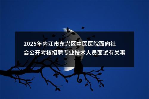 按照内江市东兴区人力资源和社会保障局 内江市东兴区卫生健康局《关于2025年内江市东兴区中医医院面向社会公开考核招聘专业技术人员的公告》规定,现将面试有关事项通知如下: